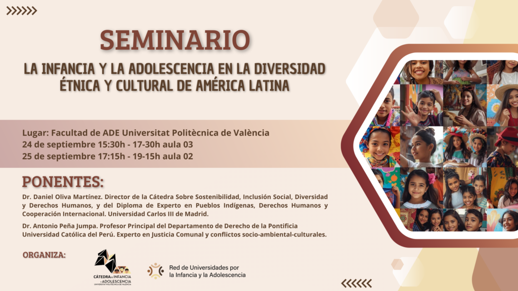 La Cátedra de Infancia y Adolescencia junto con la Red de Universidades por la Infancia y Adolescencia han organizado este seminario que se impartirá los días 24 y 25 de septiembre de 2025 en la Universitat Politècnica de València (UPV).